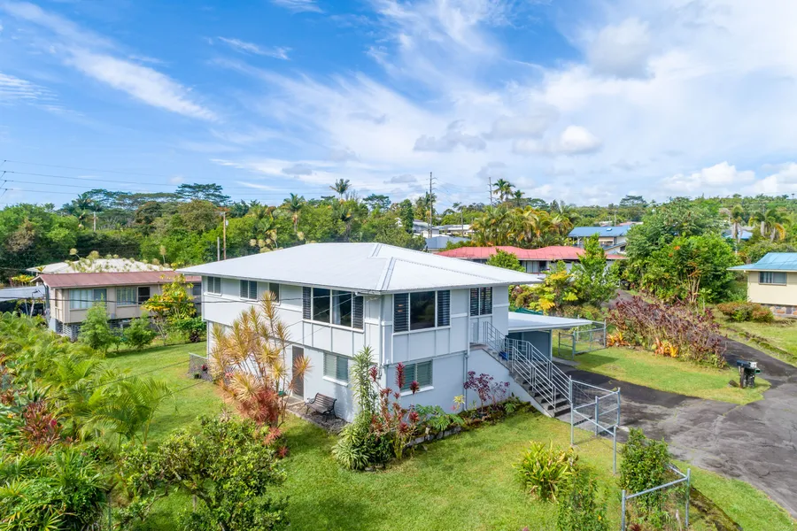 Well maintained Kama'aina 5 bedroom, 3 bathroom Pi'ihonua / Hilo home. Located close to numerous waterfalls ( Boiling Pots & Rainbow Falls) & hiking trails. Hospital is just down the hill. Mauna Kea views. Updated bathrooms & kitchen has granite counter tops. Shoji screen slides ..allowing privacy between living and dining area. This home lives & shows well. Built with Redwood & Cedar, upstairs has hardwood natural finish floors, 3 bedrooms and two bathrooms. Lower living area is concrete masonry unit (CMU) walls with 2 bedrooms and one bathroom totaling 2,276 sq. ft. with 504 sq. ft. attached two car carport. Out the door dog walking, hiking, and biking for miles along the river and to outstanding ( Narnia) waterfalls make this a stand out location. Easy access to Sadddle Road / west side Hawaii. Totally fenced 10,051 sq.ft. property with car access side gate on a small cul-de-sac. Popular "DeSilva" school district. Survey on file from June 2022. Tenting March 2022. MLS# 719583