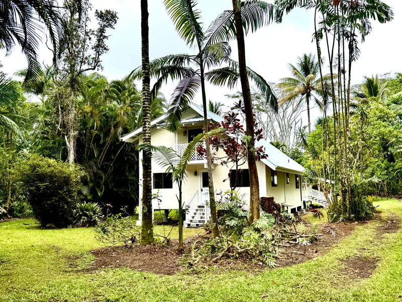 Welcome Home to Hawaiian Paradise Park!!! Step inside to this beautiful two-story open concept home sitting on (1) acre of land which features natural lighting coming in from all angles into the living area opening up to a gorgeous outside lanai perfect for entertaining guests or just relaxing overlooking the property's lush essence of nature. Property includes an abundant amount of fruit trees such as lychee, lemons, oranges, tangerines, avocados and papaya as well as Ohia, Jasmine, Plumeria, White Ginger and Birds of Paradise. The property and home also includes a (3) stage water treatment (sediment, carbon and UV) catchment system, a washer and dryer, updated kitchen appliances, and an open concept upstairs Master Bedroom area with an attached balcony overlooking the lush greenery situated all around the property. The landing of the second floor also includes an optional work space fo...