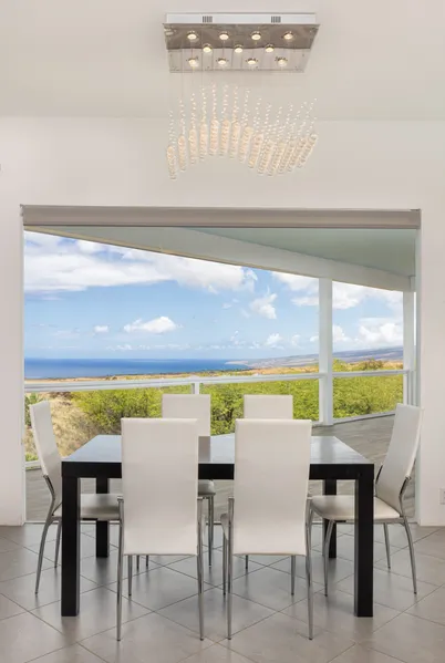 King of the Hill!! Waikoloa's Premier Oceanview Hideaway-Expansive, Versatile & Immaculate Perched on the North Rim of Kilohana Kai, this 4,861 sqft contemporary masterpiece offers breathtaking ocean, mountain, and sunset views in a private, upscale setting. Thoughtfully designed with 2 separate living areas is offered turn-key furnished, blending modern luxury with multi-use functionality, making it ideal as a private estate, income generation, or a multi-generational retreat. A dramatic bridge entryway leads to the upper-level great room, where walls of glass frame stunning panoramic vistas. Step onto the 1,000 sq. ft. covered lanai and soak in Waikoloa's unparalleled sunsets. The elegant dining area is illuminated by a crystal wave chandelier, while the chef's kitchen impresses with Miele and Fisher & Paykel appliances, sleek quartz countertops, and European high-gloss cabinetry. The ...