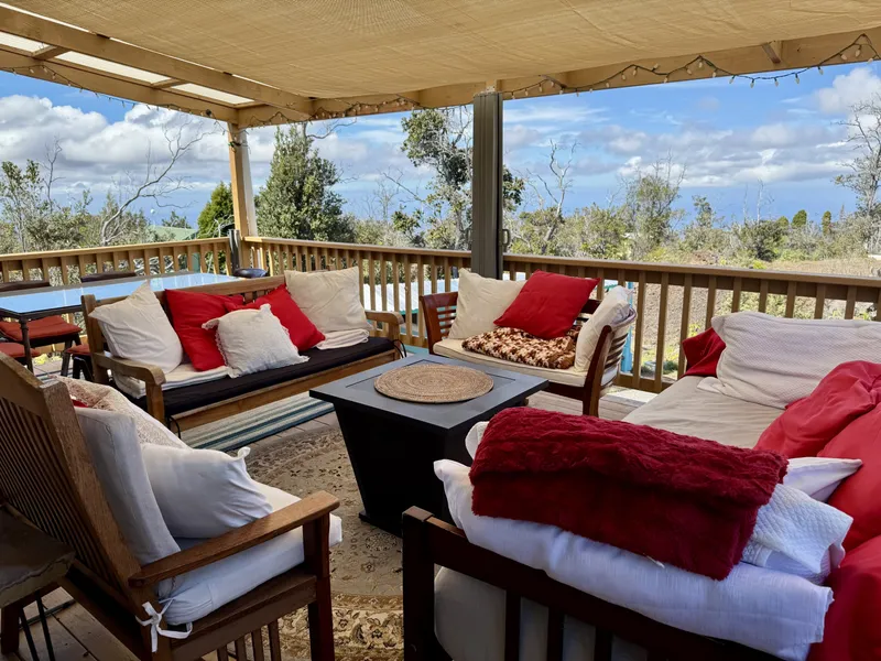NOW WITH ATTRACTIVE SELLER FINANCING!! Off-Grid Island Living with Panoramic Ocean Views in Hawaiian Ocean View Estates Discover the freedom of sustainable island living in this unique off-grid property nestled in the serene community of Hawaiian Ocean View Estates. This versatile two-bedroom, one-bath home offers an open-concept layout and comes partially furnished, making it an ideal retreat or investment opportunity. The main dwelling was built without permits but showcases thoughtful craftsmanship and comfort, featuring solar power for energy independence and wide windows that invite in natural light and refreshing mountain air. A rooftop lanai crowns the home, offering panoramic ocean views-an ideal space for relaxing, entertaining, or simply soaking in the beauty of the Big Island. The owners just installed a brand new septic tank giving buyers peace of mind and tons of value! The property also includes a repurposed cargo container, creatively converted into a charming, rentable unit-perfect for guests or supplemental income. A separate, structure adds even more potential as a hosted vacation rental or long-term residence. Whether you're looking to generate income or host friends and family, the flexibility is built in. Enjoy peaceful views and cool breezes at a higher elevation, while still being conveniently close to local shops, restaurants, gas stations, and farmers markets. With nearby access to Hawai'i Volcanoes National Park, South Point, and black sand beaches, this property is a gateway to the Big Island's natural beauty and adventure. Huge Value! Sellers are open to owner financing, offering flexibility for the right buyer. If you're seeking a lifestyle that embraces self-sufficiency, rental income, and creative possibilities, this Hawaiian Ocean View Estates gem is ready to welcome you.