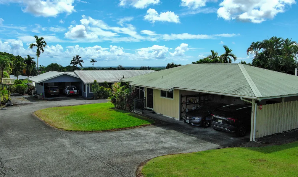 Boasting an owned photovoltaic system with 10 panels, a Tesla battery, a level-2, 240-volt EV charger in the carport, and a completed and permitted septic system ready for the year 2050. A home that truly supports eco-friendly living. Move right in with ample storage space, updated full bathrooms with tiled shower walls, well sized bedrooms, closet space, and large jalousie windows letting in natural breeze and lighting. The primary bedroom and ensuite has an AC unit for comfort. At the back of the spacious two-car carport, find the laundry room with a half bath and adjacent outdoor storage room. This stylish Hilo home is a true find.