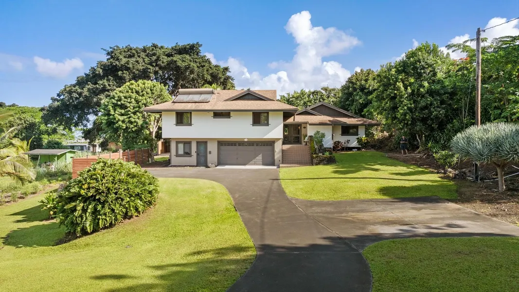 This unique home was built for maximum versatility. This property could be a lucrative investment with it's 3 separate, well appointed spaces, or a mutigenerational home, laid out on a park-like full acre. Each space features separate entries, private lanais, vaulted open beam ceilings and Koa cabinetry. The home elegantly pairs a Japanese flair with modern open concept design. Paniolo Country Subdivision proves to be a desirable place to live given it's close proximity to the airport & Kona town and comfortable, cool 800-1,000 foot elevation. There's no CCR's or fees to worry about, and each neighbor enjoys their spacious 1 acre private lot. ******** -The spacious 1 bedroom portion is 1,080sqft and features 3 lanai's -The western 2 bedroom portion is 816sqft and features granite counters with newer LVP flooring -The studio alongside the garage is 264sqft and features a granite top wet bar -Seller also has approval for the construction of an additional farm dwelling from the County of Hawaii. Current approved plans are for a large 1 bedroom dwelling with a 2 car garage and carport, but can be modified to accommodate up to a 5 bedroom dwelling. ******** Recent improvements include new seamless gutters in 2025, new exterior paint in 2024, termite tented in 2021, and a new roof in 2019. Fruit Trees on site include mango, grapefruit, tangerine, lemon, avocado, lychee, and pineapple. The makai side property line was just lined with Podocarpus for extra privacy and all lot corner pins are visible. The backyard is also graced with a spacious 10x20 utility shed.