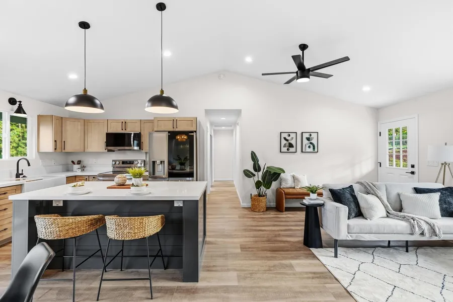 Welcome to this brand new 3 bedroom, 3 bathroom custom home situated on approximately one acre in the highly desired Hawaiian Paradise Park subdivision. Thoughtfully designed for comfort and efficiency, this residence offers simple yet refined island living with modern finishes throughout. Step inside to an open concept living area featuring stylish flooring, quality craftsmanship, and a seamless flow between the kitchen, dining, and lounge spaces which is perfect for entertaining or relaxed daily life. The contemporary kitchen showcases sleek cabinetry, ample counter space, and modern fixtures that complement the home's clean, minimalist design. Each bedroom offers generous space and natural light, while the three full bathrooms provide convenience and privacy for you or guests. The expansive one-acre lot delivers room to grow, garden, or customize to your lifestyle, all while enjoying ...