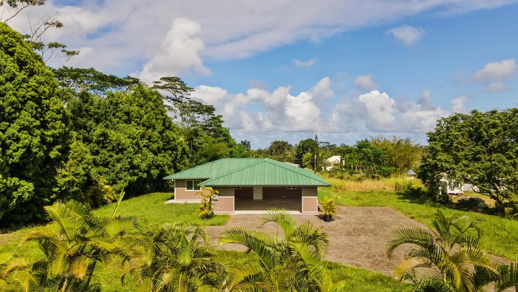 Brand-new 3-bedroom, 2-bath home located on a paved road in Hawaiian Paradise Park, just off Kaloli Drive. Minutes to Keaau and an easy commute to Hilo. This thoughtfully designed home offers 1 acre of land providing both usability and privacy. Enjoy an open-concept living area with features a beautiful kitchen with spacious counters. Throughout the home there are modern finishes, durable double-wall construction, and a comfortable layout perfect for everyday living. The living spaces flow seamlessly, while the bedrooms and baths are positioned for functionality and convenience. The backyard features a paddock suitable for animals, including sheep, pigs, dogs, and similar livestock. A spacious covered carport provides ample room for parking, storage, or outdoor living. The home also features a wrap-around sidewalk, allowing for easy access around the exterior. Experience island living with room to grow - whether it's gardening, outdoor living, or future additions. A brand-new, move-in-ready home on a full acre in a prime location - this one is a must-see.