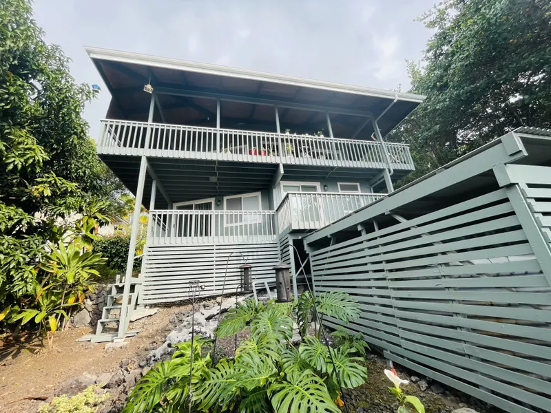Welcome to this charming twostory singlefamily residence nestled in the desirable Kona Paradise community of Captain Cook. This 3 bed, 3 bath home offers approximately 1,582sqft of comfortable living space and is beautifully positioned at a cool elevation with glorious ocean and coastline views perfect for enjoying island breezes and colorful Hawaiian sunsets. Designed for both everyday living and potential rental flexibility, the property features two separate living areas an upper 2bed/2bath section and a lower Ohana area ideal for guests . Spacious lanais on both levels provide abundant outdoor space to relax and take in the scenery. Inside, enjoy high openbeam ceilings, tiled flooring, a kitchen with granite counters and newer appliances, and French doors leading to the lanai from the upper bedrooms. Thoughtful updates include a newer roof, fresh interior paint, and an updated detach...