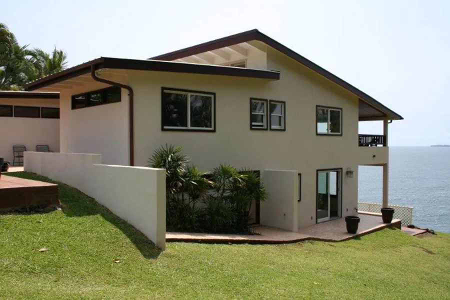 Stone, bamboo, stucco, Hans Grohe Axor Stark, all fabulous. Steam bath, custom lighting, and large slab granite. Incredible views of sunrise/moonrise and Hilo Bay. Great cul-de-sac and quiet neighborhood. Very old Hilo feel. Large garage with laundry center can easily be playroom or gym. Master bedroom and bath offers much more than the usual. There are only a few like this. Grounds improvements complete at a cost of well over $180,000.