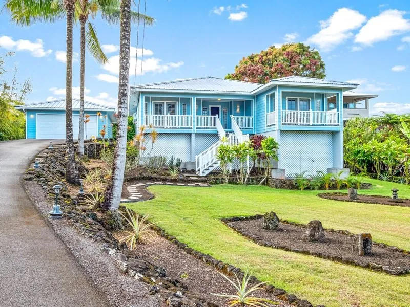 This stately home is located directly across from the ocean in Keaukaha beach area of the Big Island. Live in a Tropical Oasis in a "forever home" in an area where inventory is very scarce. This house is considered a Superior Build and youll only have to take a look to see why. All Steel beam construction, even double joisted Steel beams for the floor foundation! Built to withstand hurricane forces and even breakaway walls. The understory built on 3ft foundation walls in 3 separate "bays" making additional storage under the home. Completely insulated with an extra long (30 ft) garage giving room for your additional projects and /or storage needs. Did I mention, "all steel framed, no wood framing in this building" which means no termites. Vinyl Railings and trex Decks. The home layout offers 3 decks for outside living, 2 large bedrooms with their own bathrooms and indoor laundry a...