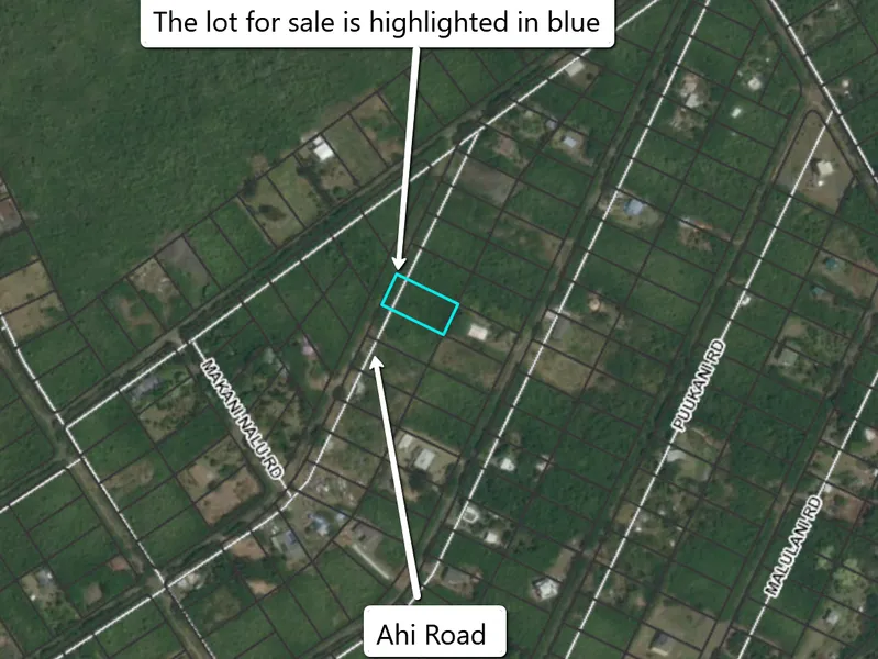 To view the property youll need to put in Ahi Road Pahoa Hawaii into your navigation system. When you get on the street you can find the property by either using the map coordinates on the pictures from the listings or you can use a phone app called Landglide. Youll need to input in Hawaii County and Parcel #9-4-009-088-0000. After you do this youll need to switch it to satellite mode to make it easier for you to find. This app will highlight the property and show a blue dot representing where you are located on the property. If you have specific questions on what can be placed on this lot, please call the building and zoning department of Hawaii County at 808 323 4770.