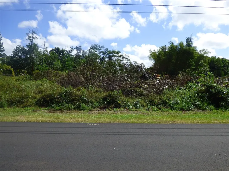 No hazardous tall trees on this Larger lot (19,107 sq.ft). On the top of the community, close to the highway, shopping area, schools, and Hilo town.