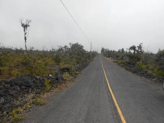 Nice lot of pahoehoe lava with small Ohia trees and other vegetation. Ocean and coastline views. Phone at front of lot. Electricity one half block away. Two side by side lots available, 3-9-2-61-8 & 9. Approximately 4000' elevation. Catchment water area. Lava Zone 2.No staking or survey at this price.