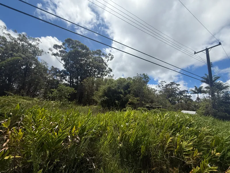 This is one of two adjacent parcels available, located just one road in from Highway 11 on a paved street with overhead electricity already in place and no SSPP fee to connect to the grid, unlike many other lots in the area. Parcels have been previously staked by a licensed surveyor. (See attachment for staking map) Together with the adjoining parcel (MLS #724424 | TMK 3-1-8-63-39), the combined lot size totals approximately 24,104 sq. ft., just over half an acre. Nestled between Volcano Village and Mountain View Town, this property is conveniently located close to restaurants, post offices, shops, gas stations, schools and more.
