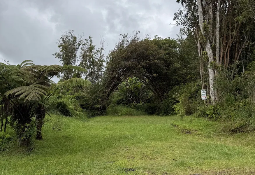Discover a lush, wooded vacant lot offering a blend of natural beauty and usable space. This property features a partially cleared grassy area ideal for future site development, landscaping, or staging equipment. The lot is surrounded by mature native vegetation, including ohia trees and Hapuu ferns, providing privacy and a classic Hawaii rainforest setting. A natural canopy formed by arching trees creates a defined entry point and enhances the property's secluded feel. Terrain appears generally level in the cleared section with dense foliage toward the rear and sides, offering flexibility for various building or agricultural uses. Overhead utility lines are visible nearby, indicating access to electricity in the area (buyer to confirm county and utility availability). This parcel offers an excellent opportunity for those seeking an improved starting point within a natural environment. I...