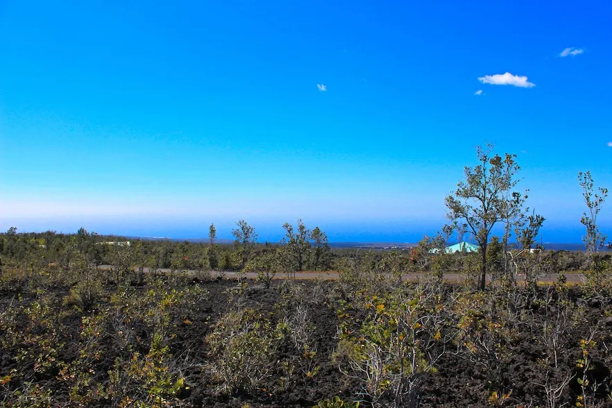 Native landscape and wide-open terrain define this vacant parcel, featuring a lava, and young scattered hi a growth throughout. The open feel of the lot offers flexibility when planning future improvements. Desirable wide, corner lot, enjoy sweeping ocean views by day, including sightlines toward South Point, and exceptionally clear night skies ideal for stargazing. The elevation offers a comfortable climate with warm days and cool evenings year-round. Power is available through SSPP for those seeking grid connection, or take advantage of the setting and design an off-grid solar retreat tailored to your vision. Convenience is key, with essential amenities just a short drive away. Down the hill, you'll find gas stations, grocery stores, shopping centers, a hardware store, propane/rentals, local restaurants, a Post Office, and an auto parts store, ensuring all your daily needs are met...