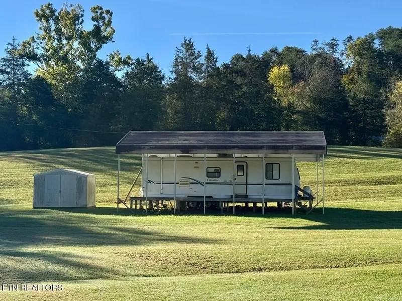 Prime location and beautiful scenic cleared one acre property with septic and city water already completed. This property has a nice camper on it sheltered under a large metal camper cover that also extends over the nice attached large wooden deck . The camper is already connected to the septic and city water and move-in ready. It also includes a nice exterior storage building on the property. Don't let this one pass you by! This type of property is in high demand in the Mooresburg area within minutes of the Cherokee Lake and boat docks. There is plenty room to build a beautiful home as well.