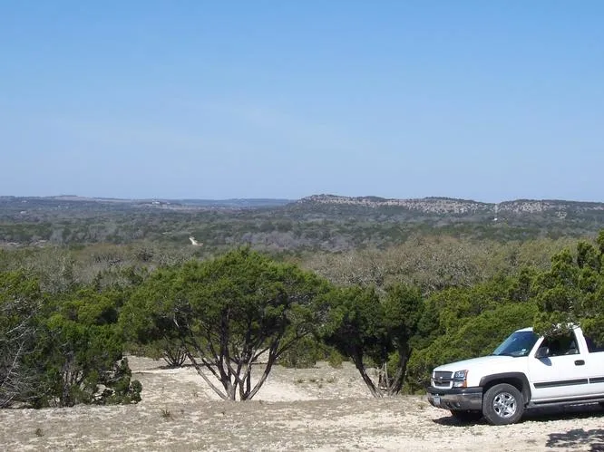 Panoramic Hill Country Views looks down on pasture area and includes long range views for miles of Twin Sisters and Devils Backbone. Property backs up to Storm Ranch on the north. Level, top of the hill building site with large canopy of oaks features 180* + views for 15 miles. Earthen water tank, easily traveled ranch road, and recent suvey with brush clearing completed on the property lines. Lightly restricted. Call listing agent for ag-exemption information. This one is ready to go!! Ag exempt tax status with 2011 estimated taxes at $43.68!