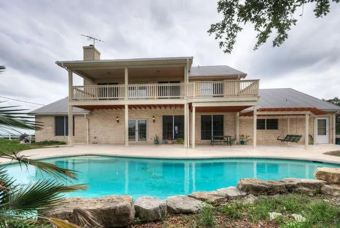 Dripping Springs views stretch as far as Wimberley from the porches, covered balconies, patios & sun deck of this secluded Texas Limestone Estate on 10 acres of wildflowers & manicured hill country land. Relax poolside with waterfall and hot tub. Enjoy sunset views off one of 1 balconies. Foyer opens to a strikingly gorgeous curved stairway with art niche and under stairs storage. The interior of this home is as immaculate, and the fact that it has been meticulously maintained is evident. Carpeted bedrooms upstairs show no wear or stains, with beautiful hardwood floors throughout the main area & tile floors in wet areas. Cook for your guests in the gourmet kitchen with convenient island & mixing center, large pantry to keep you in the country and out of the grocery store, plus more cabinets for storage/counterspace than you can imagine. Upstairs has a nice sitting area that could be used for a small study and has access to the covered front balcony. Doors leading to the backyard covered balcony can be found in a large, multi-use room - could be media room, game room, etc. - and a gate off the 2nd floor balcony makes a spiral staircase, etc. an ease to add. This is a true custom home that is still very customizable to meet your preferences. Extra land and nearby home also available.
