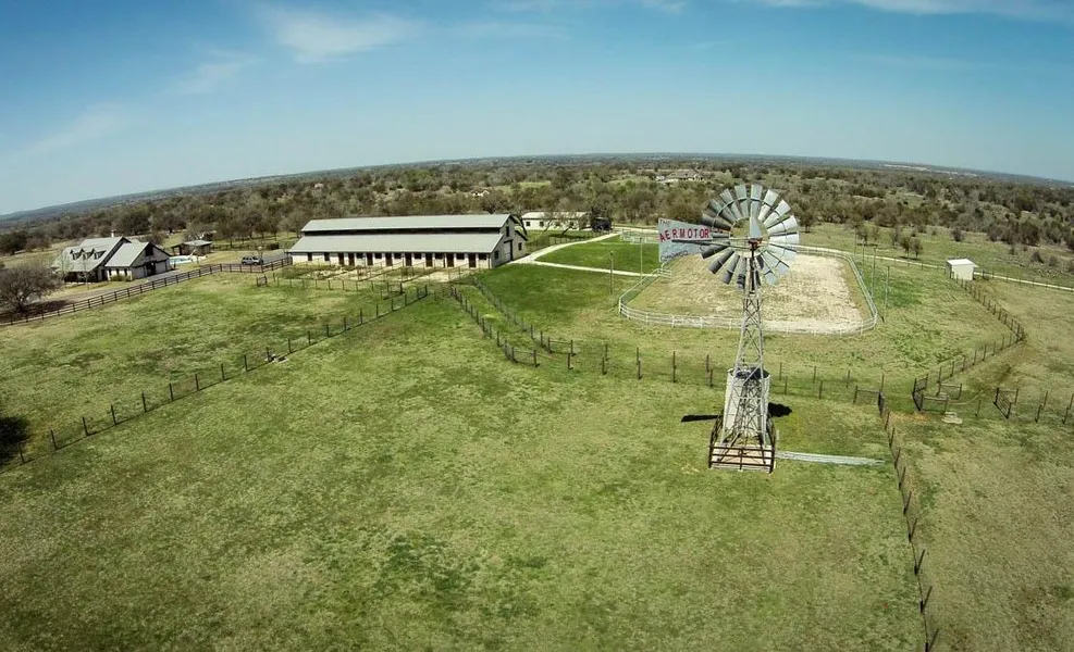 Located in the gated community of Indian Hills Ranch, this beautiful ranch offers the best of the hill country on a sprawling, fully-fenced 50 acres. Located just 10 minutes from Salt Lick, and 25 minutes from downtown Austin, this property has a 5,393 sq ft custom white stone estate with open floor plan, vaulted ceilings, and resort-like pool area. A state of the art 14-stall horse barn sits adjacent to the home, along with a cozy guest apartment with a bedroom, bathroom, living area and kitchen.