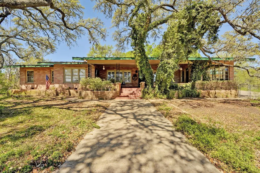 A 1950s home that was originally part of the famous Michaelis Ranch this rambling one story ranch built with bricks from Mexico features a large front porch to enjoy your generous 2.4 acre lot with towering trees. Three large bedrooms, bathrooms with original fixtures and tile work, open concept floor plan with two living/dining areas, fireplace, solarium, large barn storage area and bathroom just completed for guest suite connected to the garage.Minutes from shopping, hospital, and IH 35.