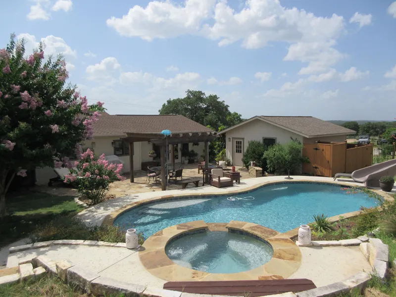 NEW LISTING! RARE OPPORTUNITY! GATED, ACREAGE COMMUNITY WITH ONLY 10 LOTS. RECENTLY UPDATED 3/2 RANCH-STYLE HOME WITH SPARKLING IN-GROUND POOL W/SLIDE & HOT TUB! PLEASANT PERGOLA & FIRE PIT AREA TO ENJOY HILL COUNTRY OUTDOORS! FARMHOUSE COUNTRY KITCHEN W/APRON SINK & GRANITE COUNTERS!ROLLING PASTURE LAND! ADDITIONAL 17.97 ACRES AVAILABLE NEXT DOOR WITH OUTSTANDING HOMESITE AND TOP NOTCH HORSE FACILITIES AND ARENA, FOR APPROX. TOTAL OF 32 ACRES. 4 HR. NOTICE REQUIRED! PETS AND ANIMALS ON PROPERTY!