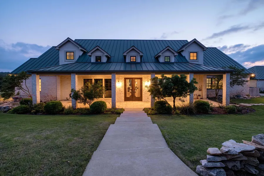 Beautiful Driftwood ranchette on 25 acres in gated community. Soaring ceilings, expansive views, private trails, guest casita, three stall horse barn, covered RV parking with hook ups, and a wet weather creek are just a few of the features that will attract you to this home. With over 5200 square feet to spread out in the main house, a dedicated media room and pool and hot tub you will never want to leave your country oasis. This home has hardwood floors throughout the main living areas, a large open living room with vaulted wood paneled ceiling and stone fireplace, formal dining room with glass pocket doors, large kitchen with breakfast room, and an office/library with built ins. The backside of the home is walls of windows and French doors, flooding the rooms with natural light and views to the mature oaks and pool area in the backyard. Main house square footage is 5240 and detached gu...