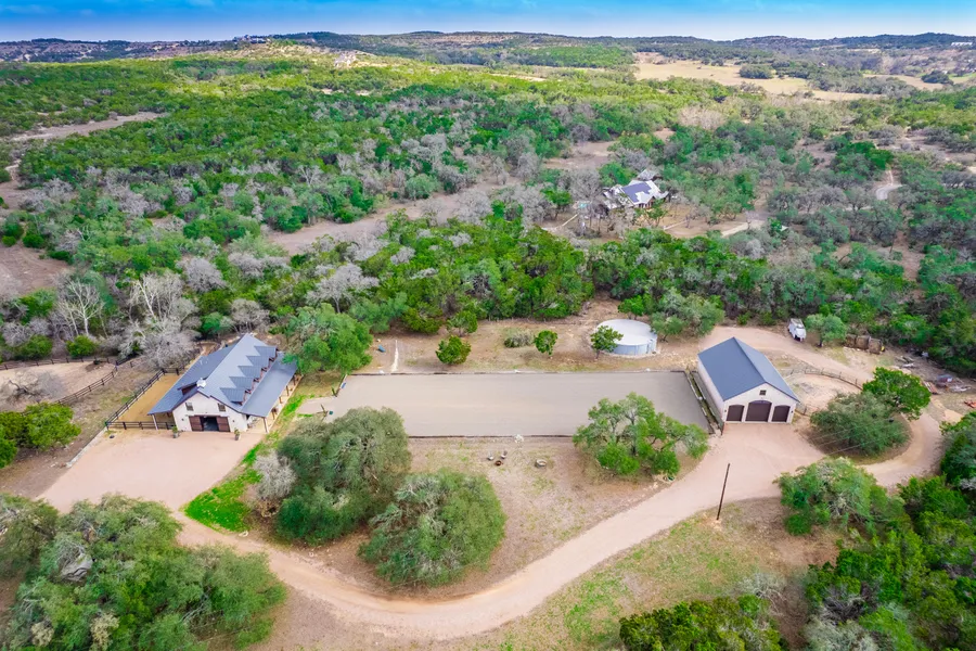 Beautiful Barndominium with a 2160 SF, 2 bedroom, 1 bath main residence on the upper level and a ranch manager studio apartment with 672 SF 1 full bath on the main level. The studio has direct access to the barn and stables. Outdoors offers a 1692 SF garage with double doors large enough to park an RV, riding arena, three fenced horse paddocks, plus a horse washing station. Great future site with excellent views for a future home. Gated entrance.