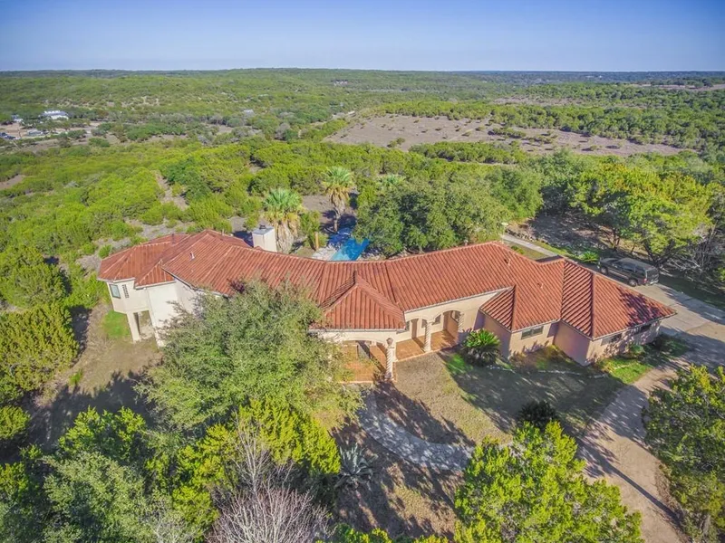 Your private retreat awaits with beautiful architecture and high end fixtures! Stunning custom home situated on 9 acres with Lone Man Creek frontage. Relax by the lap pool while taking in spectacular Hill Country views. Well equipped kitchen with granite counters, 5 burner Thermador range, built in refrigerator and double convection ovens. Private master suite includes an office, balcony, luxurious bath and Cedar closet. The open floor plan and extensive patios make entertaining a delight.
