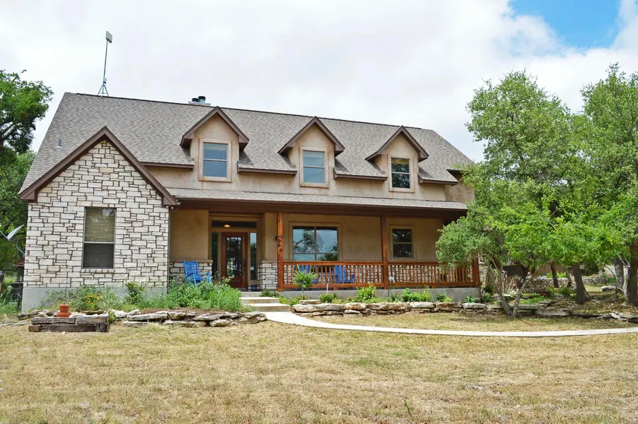 Beautiful distant views from covered front porch of lovely custom home on 19 ag-exempt acres. Many wonderful features including stained concrete & wood flooring, stone columns, huge fireplace w/mesquite mantel, built-ins, formal dining, loft/living area and an expansive screened-in back porch. Spacious master suite with fireplace, double vanity, jetted tub and walk-in shower. Kitchen features gorgeous granite counter tops, built-in ovens, center island, separate breakfast bar and casual dining area. Darling 900 SF 1/1 guest home w/office/2nd bedroom can be used as a home-based business. Two-car pavilion w/shop, 2-story barn and well house w/storage. Covered in Oak trees w/a seasonal creek and plentiful wildlife. Adjacent 11.7 acres also available for $140,000. Located in a gated community of larger tracts and high-end homes. WISD.
