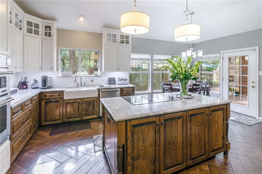 Gorgeous one story 4BR/ 2BATH home situated on a large half acre corner lot in Coves of Cimarron. Inside you will find a beautiful Gourmet Kitchen. Updated features including Kohler Cast Iron Apron Sink, JennAir appliances, Convection Microwave and Oven, Grey Goose Quartzite countertops, custom cabinets and a large kitchen Island perfect for gathering. Leading out to the patio you will discover a Custom fireplace perfect for relaxing or entertaining. Full landscaping sprinkler system including electrical lighting in front and backyard. Separate AC unit dedicated to the garage. Don't miss this amazing opportunity to own a beautiful property in Coves of Cimarron.