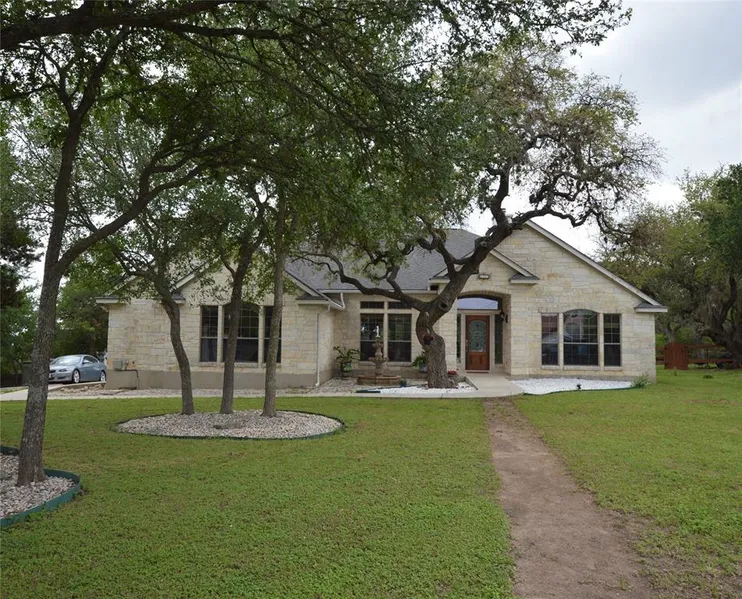 STILL SHOWING! TAKING BACKUP OFFERS! WELCOME HOME!! This BEAUTIFUL semi-open floor plan, white stone home sits high & dry on 3/4 acre of PARADISE in Quarry Springs. Short commute to Austin & San Antonio, easy access to I-35, minutes from great shopping at Tanger Outlets. The best entertainment & great restaurants are just waiting to be explored by your family. New roof going on in June. Open the front door to the foyer to and abundance of natural light. Large normal dining room to left and a large study with double-glass doors for the work form home professional sitting to the right. Look into the spacious kitchen with an island, breakfast niche, & breakfast bar top overlooking the oversized family room that has a stunning, cozy floor to ceiling stone wood-burning fireplace. Oversized owners' retreat has a LG walk-in closet & ensuite. Covered back patio, super long driveway, side entr...