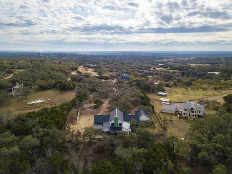 Views, views, views! Priced As IS!! Beautiful Spec home allows you to pick the finish out on your dream home with stunning views out to the valley! Beautiful 10 acre hilltop lot with 3 or 4 bedroom, 3 bath 3830 sq foot main home custom new build currently under construction, near sheetrock with only a few months left to build. Backyard has plenty of room for an outdoor kitchen, pool and spa and fire pit. Current design allows for 3 full bedrooms, with master suite/retreat on one end of the house and featuring vaulted ceilings, oversized master bath with double vanities, large walk-in shower, and soaking tub; Oversized master walk-in closet with center island/dresser; and access to steel door secured gun closet/safe room. Additional 2 bedrooms to feature walk-in closets, high ceilings on opposite side of the house and 2 more full bathrooms for maximum privacy. Center of the home calls for open kitchen with large center island that looks out to vaulted ceiling living room and floor to ceiling rock fireplace, as well as views to backyard and valley beyond. Barndominium is fully finished with 2046 sf with top end touches and 2 bedrooms, 2 bathrooms a full kitchen, office with kitchenette and exercise room. It's attached to the oversized 3 bay garage/barn that offers an office with kitchenette, and flex room which also has a bathroom. Live in the Barndominium while you finish the main house, then when all is finished you'll have amazing guest quarters for all your entertaining. Property is solely on 46,000 gal rainwater tank. Floor plans, engineering docs, septic plan, Seller Disclosure (for Barndominium), as-is inspection to date, site survey attached. See agent for showing appointments.