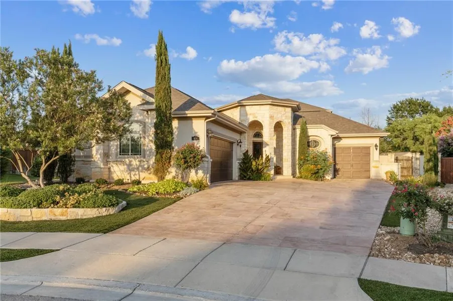 Enjoy your very own luxury resort at home! Exquisite & immaculately maintained Mediterranean style home with so many extras! Saltillo tile floors and baseboards in main living areas. Hand-scraped wood floors, flat textured smooth finished walls, archway corbels, hand painted and glass tile inlayed rug pattern on foyer floor. Gas log fireplace with hearth seating and custom cushions, custom wrought iron curtain rods Upstairs bonus living area (15x21). Pergola covered patio just outside the dining area. Full house water filtration softener system. 2016 fiberglass salt water pool (14x33) with waterfall and separate therapeutic spa (Bullfrog brand), outdoor kitchen, outdoor fireplace with beautiful xeriscape garden beds surrounding. Private solar heated outdoor pool shower. 6 stone and stucco walls with custom made wooden gates for privacy around the backyard which backs up to a greenbelt! Enter through a pair of antique gates into a large Italian style garden which has numerous beds of herbs, vegetables, and mature fruit trees. Prepare fresh garden to table meals from your own backyard garden designed by a Master Gardener. 8 zone sprinkler system has been converted to 3 zone drip/micro sprayer irrigation. Master Gardener lives here so you can only imagine! UV filtration in both HVAC systems. E4 windows with tilt for cleaning. Added window tinting on west side of house upstairs windows. GENERAC (24W) generator (7 year warranty conveys) that covers the whole house was installed in 2022. Enhanced security system. Walk-in attic with flooring for generous storage. All 3 garage floors are finished sealed/painted and have storage shelves and cabinets. Concrete overlay driveway finish. Gutters. Exterior lighting includes path, parameter, up, and motion sensor lights lots of outside outlets as well. New 2022 Pentair brand pool equipment includes a 3 year manufacturers warranty. Home warranty and termite insurance are in place. This home and property is a must see to appreciate!