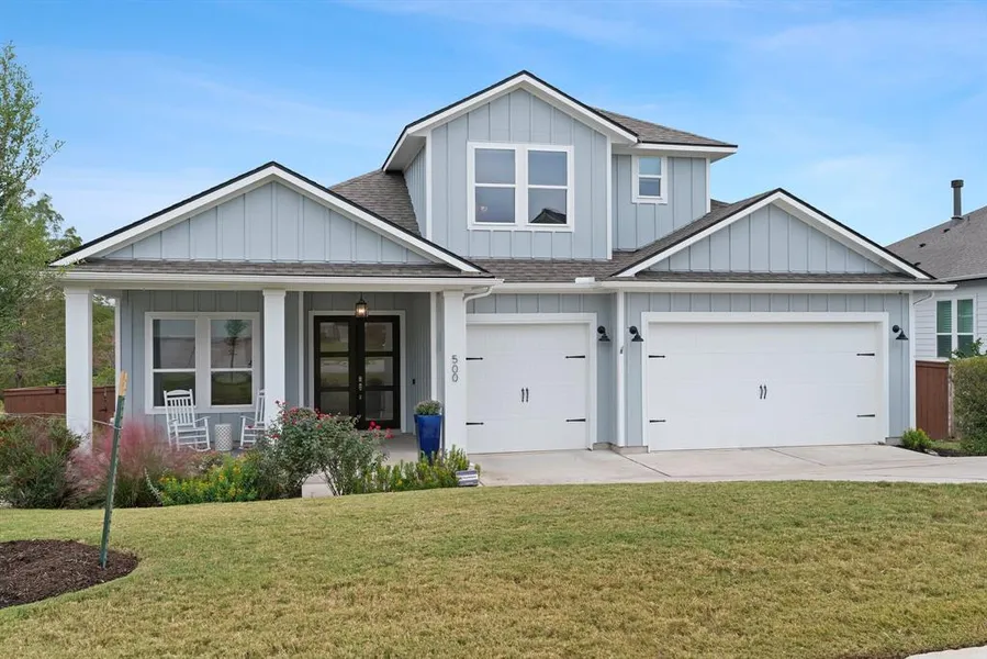 Located in the highly sought-after community of Headwaters, this immaculate Dream Finders home is move-in ready. Upon walking through the wide foyer and into living room, you will see a lush view of the greenbelt through a three-panel sliding glass door. Downstairs features 3 bedrooms and 3 full bathrooms, dining room, flex space, and an office/study. Upstairs you will find a spacious fourth bedroom with full bath and walk-in closet. The house features lots of upgrades including designer light fixtures, a large kitchen island with quartz countertops, overhead garage storage, and window coverings. The community has miles of trails and green space with an amenity center and coffee bar, split-level pool with beach entry, a state-of-the-art fitness center, event pavilion with an outdoor fireplace, playground, and a dog park. This home is located within the award-winning Dripping Springs ISD....