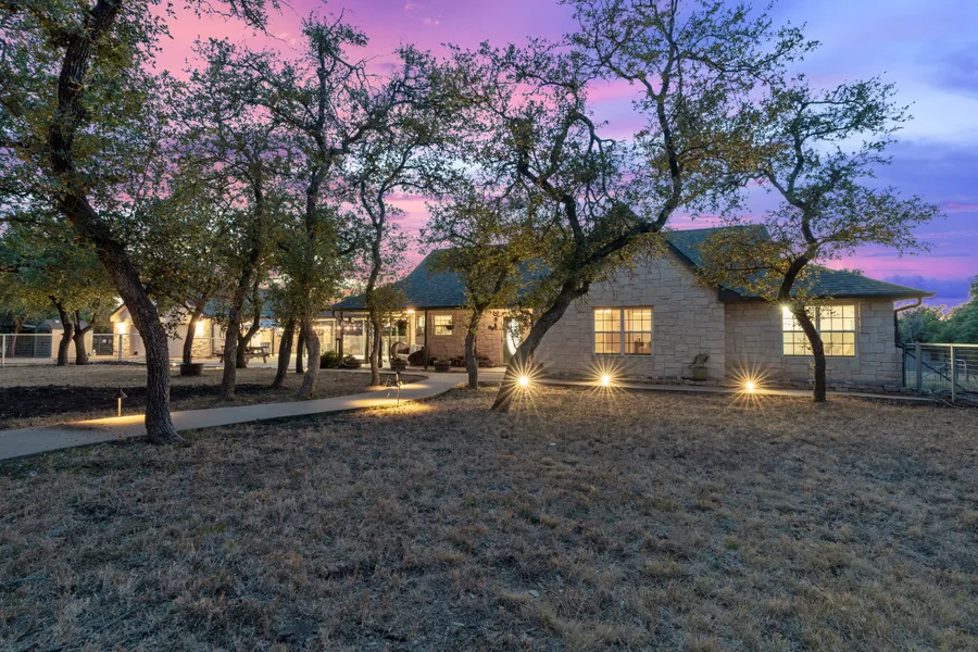 Private gated entry with separate pasture for horses and multiple chicken coops. This amazing property is surrounded by mature shade trees, a gleaming refreshing pool, and is completely enclosed with fencing. This single-story home offers luxury vinyl and tile flooring, stunning beamed ceilings, wood burning stove, wonderful natural light, and pure privacy. The master suite offers a double vanity sink and direct access to the hot tub.