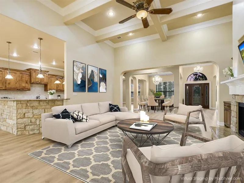 Discover the epitome of luxury living at Elliott Ranch, an exclusive gated community in Buda, TX. This 5-bedroom, 4-bath masterpiece is perfect for multi-generational living, boasting a grand main house spanning 4,937 sqft, complete with a designated office, home theater, game room, formal dining, and living areas. The oversized primary suite has access to an extended patio and features a spa-like bath with a garden tub and separate shower. Recent lavish upgrades, including new flooring throughout (excluding the laundry room and baths), enhance the entire residence.The gourmet kitchen, adorned with custom cabinetry, a stylish backsplash, and stainless steel appliances, flows seamlessly into the breakfast area, formal living and dining spaces, game room, and home theater, blending elegance with functionality. The property also includes a 937 sqft guest house-ideal for accommodating exten...