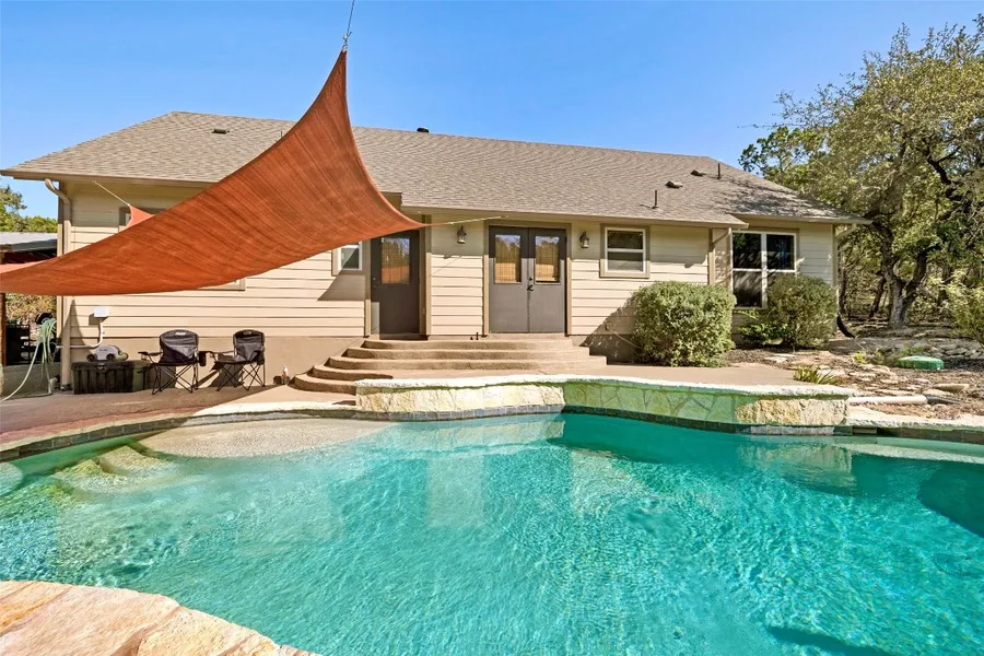 PRICED TO SELL! GET THE DEAL OF A LIFETIME! Nestled amidst the serene beauty of Wimberly, this idyllic retreat on 0.7 acres blends modern comfort with natural tranquility. This exquisite open-concept home, complete with a backyard pool surrounded by lush greenery and a stone patio with a covered seating area, captures the essence of Hill Country living. Upon entering, you'll find a freshly painted interior and an open-concept floor plan that merges living and dining spaces, creating a warm, inviting atmosphere. The gourmet kitchen features sleek stainless steel appliances and ample counter space, perfect for entertaining family and friends. As you venture outside, prepare to be captivated by an expansive backyard oasis, complete with a sparkling swimming pool ideal for hot summer days. The plush lawn and backing woods ensure privacy and a peaceful setting for outdoor gatherings. Indulge ...