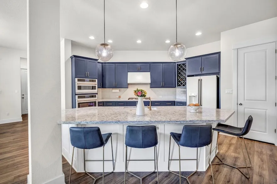 Discover the pinnacle of refined living with this 2020 David Weekley masterpiece in the highly sought-after Estates of Sawyer Ranch. Modern sophistication and thoughtful design across 2,532 sq. ft. of meticulously main level crafted space. The open Fisk floor plan features 10-foot ceilings and expansive windows, enhancing the flow of natural light in connection with the surrounding Hill Country landscape. The Primary Suite offers electric solar shades, a spa-like bath with dual oversized vanities, a walk-in shower, and a spacious owner s closet. The gourmet kitchen is equipped with Nautical Blue Kent Moore cabinets, quartz countertops, high-end GE Cafe appliances, and a 36" 6-burner natural gas cooktop, catering to both everyday dining and grand entertaining. An 855 sq. ft. upstairs bonus room and upstairs Bedroom #4 and full bathroom offer additional flexibility for diverse living needs...