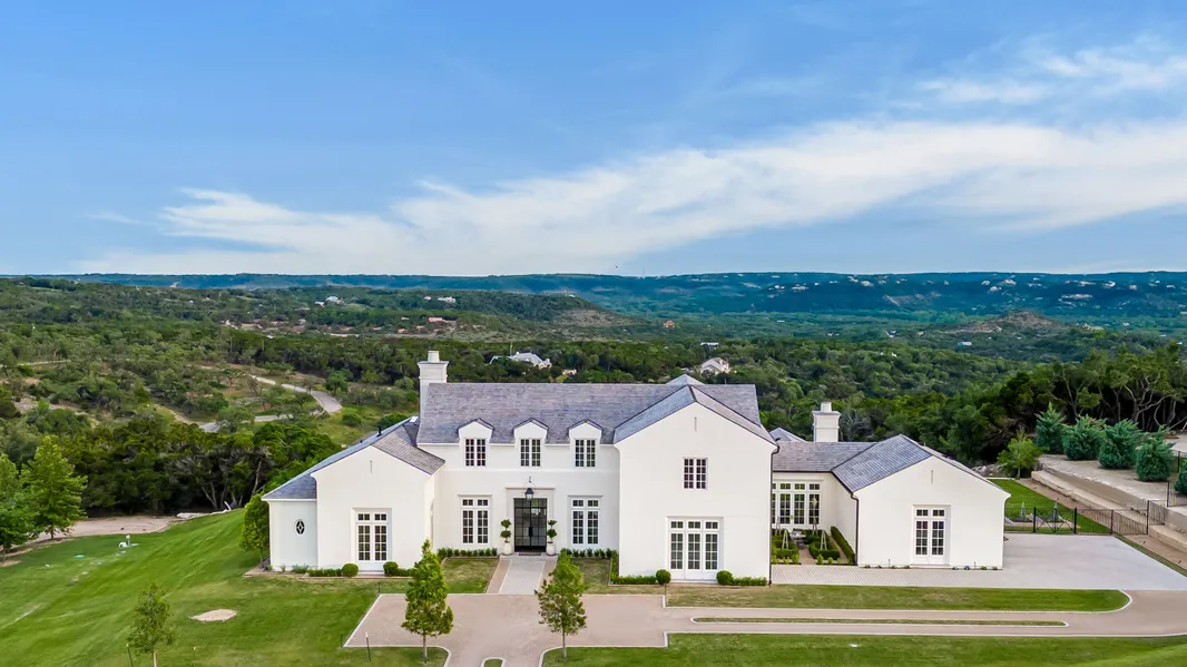 Discover your own private oasis in this stunning luxury estate on its very own Waterwell. Perched on 5 acres with breathtaking 360-degree views of the Wimberley Valley, this property is inspired by Belgian modern architecture and every detail of this masterpiece has been carefully designed to create elegant living space. The architecturally thick walls and ellipsed ceilings and dormers inside the house create depth and European detail, while the 9” wide plank white oak wood floors add warmth and sophistication to the living spaces. Oversized Leuders limestone slabs and tumbled pavers lining the driveway in true Belgian style add to the grandeur of the property. The living room boasts solid wood beams and a custom fireplace, while the kitchen features smartly designed behind white oak cabinetry, a La Canche range, a massive center Calcutta Marble Island and countertops, and overlooking the breakfast area. Perfect for entertaining guests, there are ample outdoor living spaces, including an outdoor kitchen, pergola, pool and spa with a tanning ledge, and limestone surround. The primary suite is a true retreat, with barrel vault ceilings and Alkusari limestone floors in the bath. His and hers vanities, built-ins, and closets provide ample storage space, while the Waterworks and Rohl fixtures add a touch of elegance. The plaster finish shower and Italian marble countertops create a spa-like atmosphere, while the garages feature epoxy finished floors and built-in storage. Up the extra-wide stunning staircase, three more sophisticated secondary bedrooms, a reading nook, and a bonus room wired for theater and a ceiling projector. The study is adorned with a wood tongue and groove panel ceiling and stays true to the Belgian color palette. Located just three minutes from downtown Wimberley and Blue Hole, this estate is centrally located with easy access to Austin, Kyle, Dripping Springs and so much more! Experience elegance inspired by Belgian modern architecture in this exclusive, gated neighborhood.