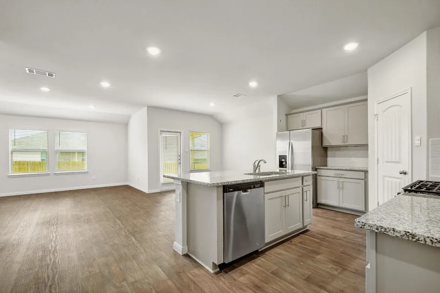 This beautifully maintained home offers a spacious and functional layout, ideal for a variety of lifestyles. Step into a welcoming foyer that opens to a bright and airy interior. At the heart of the home is a modern kitchen featuring a large kitchen island, elegant granite countertops, stainless steel appliances, decorative tile backsplash, recessed lighting, and a generous pantry. The kitchen flows seamlessly into the dining area and living room, creating an open-concept space filled with natural light. There's plenty of room for comfort and flexibility. The primary bedroom is a spacious retreat, and the primary bath includes double sinks, a stand-up shower, and a large walk-in closet. Outside, enjoy a large backyard with plush green grass and a covered patio ideal for relaxing, entertaining, or outdoor activities. Located in a desirable San Marcos neighborhood, this home combines comfort, style, and convenience. Don’t miss this move-in ready gem!