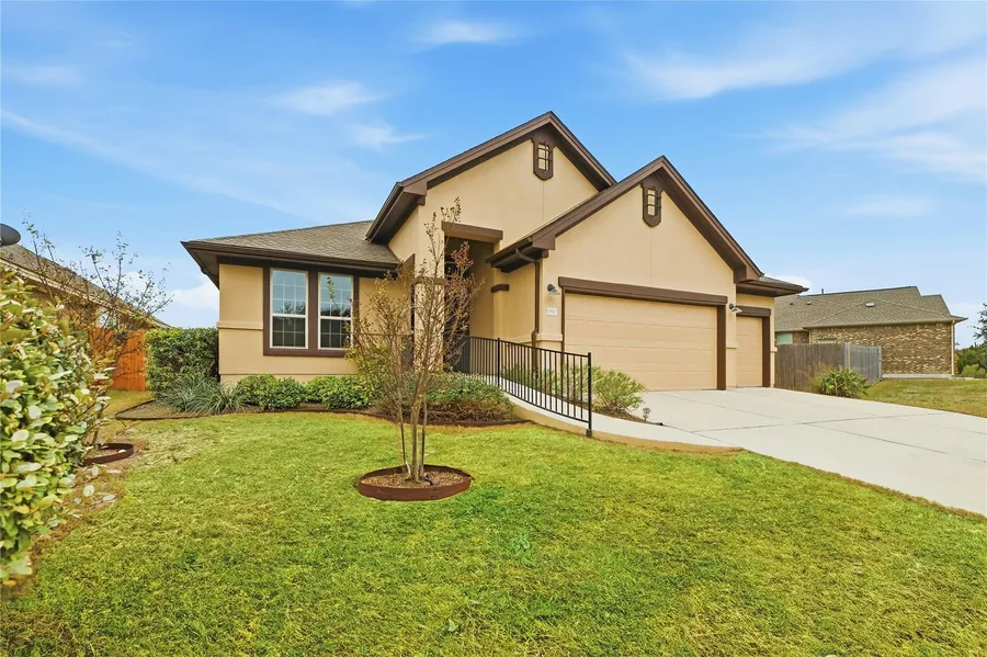 Welcome to this charming 3-bedroom, 2-bathroom home that perfectly balances comfort and convenience in the heart of Dripping Springs. Nestled on a peaceful street, this 2,028 square foot residence offers an open floor plan that flows seamlessly throughout the main living areas, creating an inviting space for both daily life and entertaining. The thoughtfully designed layout features a separate office with elegant French doors, providing a quiet retreat for work or study. Book lovers will appreciate the custom built-in shelves in the living room, while the practical mudroom off the laundry area keeps everyday clutter at bay. Natural light floods the interior, highlighting the home's warm and welcoming atmosphere. The spacious primary bedroom comes complete with an en-suite bathroom, offering a private sanctuary at the end of each day. Two additional bedrooms provide flexibility for family, guests, or hobby spaces. Outdoor enthusiasts will love the expansive backyard, perfect for gardening, play, or simply enjoying Texas sunsets from the covered back porch. The three-car garage provides ample storage and parking for multiple vehicles. Location couldn't be better, with easy access to Highway 290 connecting you to both Austin's urban amenities and the scenic Hill Country. You'll be just minutes from Dripping Springs High School, convenient shopping at H-E-B, and The Home Depot for all your project needs. The nearby Dripping Springs Ranch Park and Event Center offers additional recreational opportunities. This home combines small-town charm with modern convenience, making it an ideal choice for anyone seeking the best of both worlds.