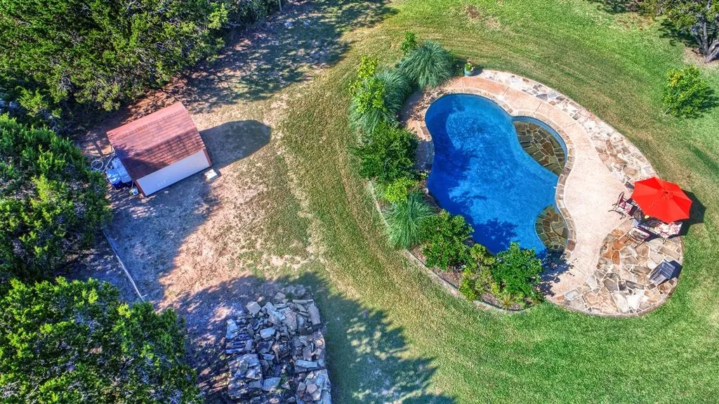 Shining and Spotless! So much to offer for this affordable home on acreage with gorgeous mature oaks and in-ground pool with waterfall. The house has been updated throughout with recent paint, carpet, kitchen cabinets, counter tops, new appliances, fixtures & much more. HVAC recently replaced. Private lot with home tucked away from the road, horses allowed & property fenced in the back plus fencing for garden & storage building to convey & RV connection. Great location in the hill country & Dripping ISD.