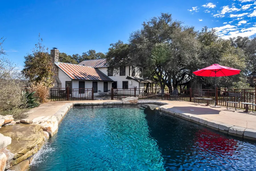 49+/- acres just 5 minutes from downtown Wimberley! This property has everything going for it! Majestic and old oaks surround the main house compound, including a detached 1/1 cabin and 2/1 bunkhouse. An almost new 3750 sq. ft. metal workshop is a highlight, with several other garages, barns, carports, livestock loafing sheds, etc. offer many possibilities. Newly established irrigated vineyard is already producing fruit! Both well water and Wimberley Water on the property. Newly installed chip and seal driveway! Currently has STR1 CUP in place for short term rentals on the Cabin and Bunkhouse only. This CUP does not transfer with a sale. Buyer is advised to seek STR information from the City of Wimberley.