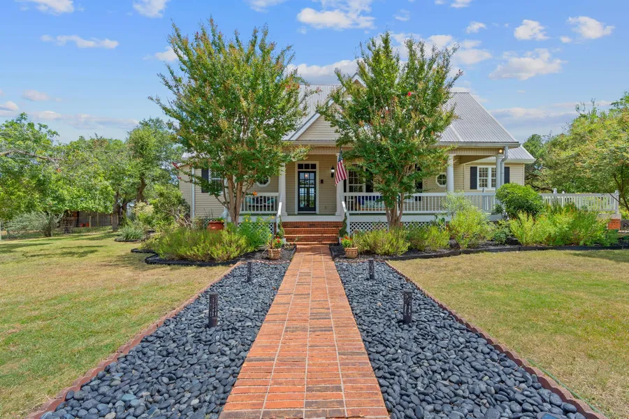 Experience Southern Living appeal in this exquisite unrestricted listing! Situated on 5.16 acres of serene countryside, this classic farmhouse seamlessly blends timeless elegance with Texas charm. The main living area boasts a dramatic cathedral ceiling, a cozy wood-burning fireplace, and a row of French doors opening onto peaceful views and a screened patio. A second living area opens into the kitchen and breakfast nook, complete with its own fireplace. The expansive kitchen features a stainless steel gas range, double ovens, ample cabinets and counters, and walk-in pantry. The grand primary suite showcases a spa-like ensuite with dual quartz vanities, a soaking tub, an oversized walk-in shower, and an enormus closet. Upstairs, a spacious third living area connects two sizable secondary bedrooms, each with its own ensuite bath. Outside, you'll enjoy serene views and beautifully landscap...