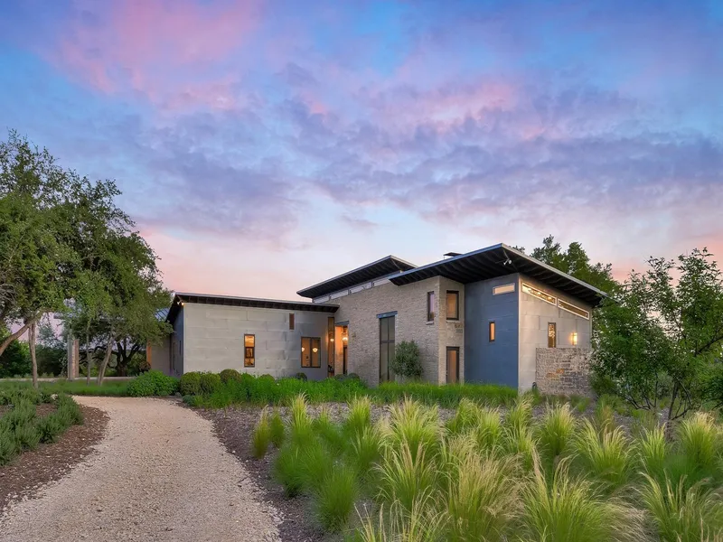 Welcome to this rare and spectacular 27-acre recreational property with 433 feet of Blanco River deep water frontage and endless Texas Hill Country views. Located just minutes from Wimberley, Texas and 45 minutes from Austin, Texas this property is perfectly positioned on the banks of the Blanco River and offers privacy and tranquility. The combination of breathtaking canyon walls, stone steps leading into the water, Cypress trees, native wildflowers and grasses, accentuate the water's edge that is ideal depth for year-round kayaking, fishing, and swimming. The modern ranch house is perfectly oriented to emphasize privacy and spectacular views of a lake and the hill country from one room to the next. The high ceilings, walls of windows and doors help connect the outdoors with the indoors and offer endless vistas and stunning sunrise and sunset views. Architectural details include clean ...