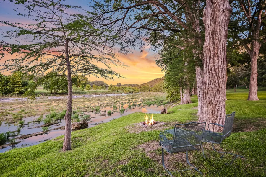 Nestled between the Blanco River and the hills of Wimberley is a place that is so serene and private you won't believe such a beautiful property exists a short distance from the historic Wimberley Square. This breathtaking 7.48 acres has over 1200 feet of Cypress and Pecan tree lined river front. The landscape has been meticulously maintained to enhance the views. When you take the private drive across the bridge to enter the property you will see the natural beauty of Wimberley at it's finest. On the right you will see the base of Paradise Hills and to the left the Blanco River. In front of you is an amazing home designed to drink in the views of this awesome setting and a vast green space to enjoy with family and friends. Go for a walk to the massive boulders that line the far boundry or kayak the river under the shade of ancient Cypress trees. The unique custom home was completed in 2020 and was designed and placed to celebrate this outstanding setting. Large picture windows line the front of the house to provide expansive views of the river and manicured grounds. Whether in the kitchen/living area, home office or the front bedrooms you will enjoy unobstructed views of the beauty of nature. The floors are reclaimed Cypress that is perfectly installed and finished. Concrete countertops accentuate natural finishes with understated beauty. The tall ceilings give a sense of space and openness complimented by the massive windows which flood the home with natural light. The interior walls and ceilings are finished in wood and have spray foam insulation which makes for a quiet and energy efficient home. You can use the carport for parking or to host an outdoor gathering. Enjoy the views of the river from the detached cabin. This property is literally at the end of the road with unparalleled privacy and views that almost defy description. Iconic riverfront properties like this are seldom available. Ag Evaluation on 7 acres for bees means reduced taxes beginning in 2024.