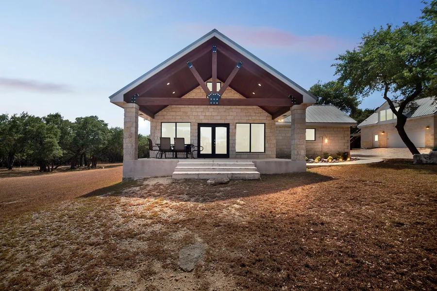 Private 32 Acre Hill Country Estate w\Access to a Private Aircraft Runway. This custom home is nestled back in the woods w/incredible Hill Country views. Large back porch faces Southeast so you can enjoy the view and outdoors. Main House has a single master suite with a secondary bedroom w/full bath upstairs with separate entrance so guests can enjoy the privacy. 1100 of property frontage on the runway with an excellent location for you to build your airplane hanger. Fly in-Fly out at your leisure.