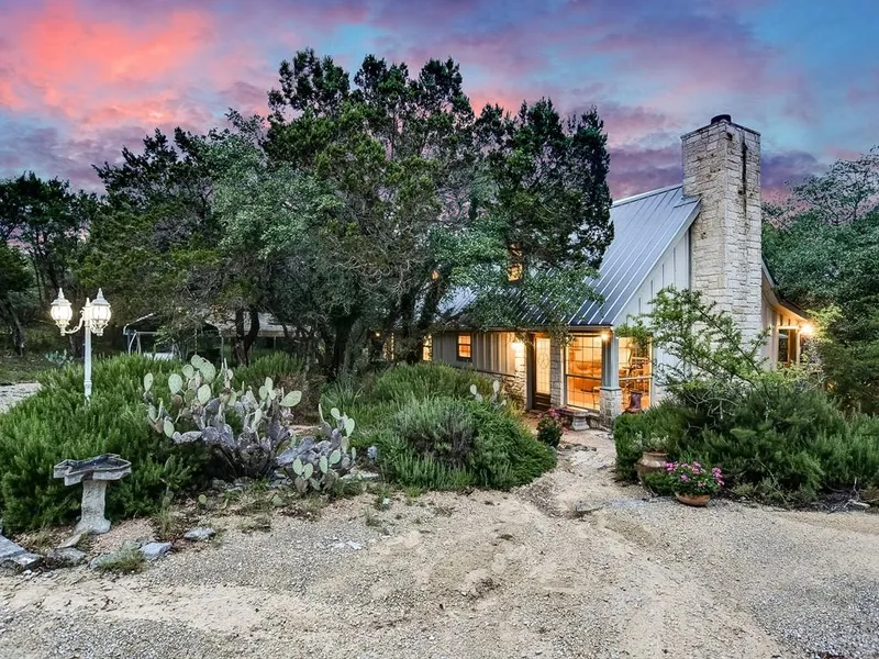 Beautiful sunsets are waiting for you at this Hill Country retreat between Wimberley and Blanco. This home has a vintage Texas look with many windows to take in the views of the surrounding hills. The perfectly situated deck is a great place to wind down at the end of the day or entertain. This home sits on a heavily treed six acres providing great privacy. The kitchen/living room area has an open feel with tall ceilings and a large fireplace. There is plenty of room for family and friends. Large barn.