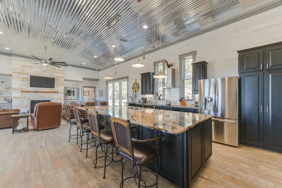 Improvements: The extremely clean and well cared for main home was built in 2018. There are 2 bedrooms, game room bed and 2 1/2 bathrooms in the main home. The kitchen/ living area is huge and open concept with fireplace. The upstairs game room offers amazing views to the South. Entertaining areas consist of large covered back patio, porches, bocce ball pit, in ground exterior fire pit, hot tub, shuffleboard and hidden tree house for the kids. A detached 1 bed 1 bath casita sits just off the back patio. There is a 2 bay attached garage.