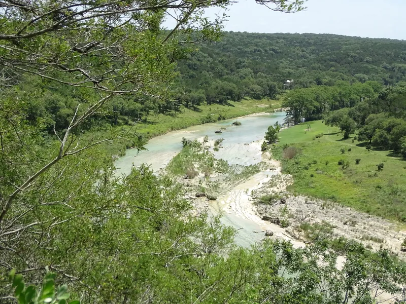 Panoramic views coupled with over 370 feet of Blanco River frontage make this 6.08 acre parcel a rare commodity. Why not build your dream home on the edge of this high bluff with never ending views. Look out across fields and woodlands of neighboring ranches or down into the crystal clear water of the Blanco River. Wild life abounds and the changing seasons bring constant surprises of new, differently colored, hill country views. Electrical service is underground in this gated community. $570,000