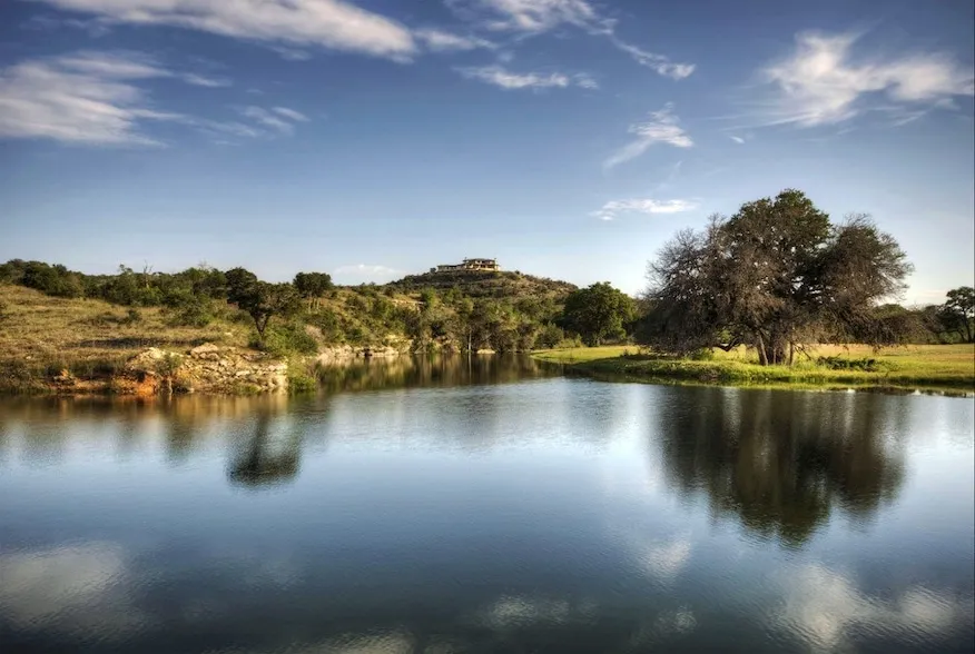 Unparalleled 855-acre live water ranch in the heart of Texas Hill Country, just west of Dripping Springs and 45 minutes from downtown Austin. This ranch offers extraordinary improvements and incredible views with nearly 1.5 miles of spring-fed Mustang Creek flowing year-round, even through drought. The creek is dammed up to create several deep lakes perfect for fishing, swimming, paddleboarding, etc. Also within 30 minutes is the vineyard region between Johnson City and Fredericksburg as well as Wimberley.The ranch's topography is diverse with dramatic valleys and soaring hilltops that provide breathtaking panoramic views. Perched atop one of these hilltops is a 7,000 sqft custom home featuring 6 bedrooms, 7 bathrooms, and upgrades throughout including new hardwood floors, a state-of-the-art kitchen with new appliances, and a new Savant AV control system. Step outside to enjoy the negative-edge pool and outdoor living areas with sweeping vistas.This ranch is incredibly private and is accessed by a gated, private 1-mile paved road and is completely high fenced. Upon entering the gated entry, there is a large pond, incredible wildlife is abundant throughout the ranch. Included on the ranch are 10 deer feeders, 6 turkey feeders, and 6 food plots, ensuring a healthy habitat for a wide variety of wildlife. The ranch is under wildlife management.Additional structures closer to the creek include a rustic guest house, a foreman s house, a nice moderately-sized equestrian facility and a large equipment barn.Whether for hunting, fishing or recreational enjoyment, this ranch is a truly exceptional property offering the best of Texas ranch life.