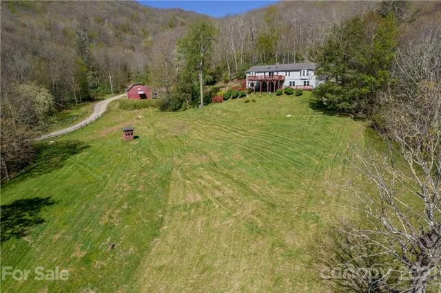 A Great Smoky Mountain Retreat! This private, 2 story home on 12 acres offers a little bit of everything! Enjoy long-range mountain views, fenced pasture area w/ a 2 story, 6 stall barn, the ability to hike to the Blue Ridge Parkway & Smoky Mountain National Park trails, & miles of 4-wheeler/horse trails right from the home. Don't forget the 3 creeks & spring-fed pond w/firepit. The home features 4 BR & 4 BA (3 master suites + bonus), an open floor plan w/mountain views from each room. The main level can be self-sustaining w/ its own laundry & zoned HVAC. Make the downstairs a separate living quarters if desired for rental/family. Plenty of storage including a pantry & 12 closets (2 walk-in!). The home is contemporary w/ rustic mountain accents throughout. Plenty of deck space to take in the mountain views & local wildlife including elk & turkey. The home feels remote yet less than 15 min to Maggie Valley. Drive right into the 2 car garage & enjoy the peace & quiet of the mountains!